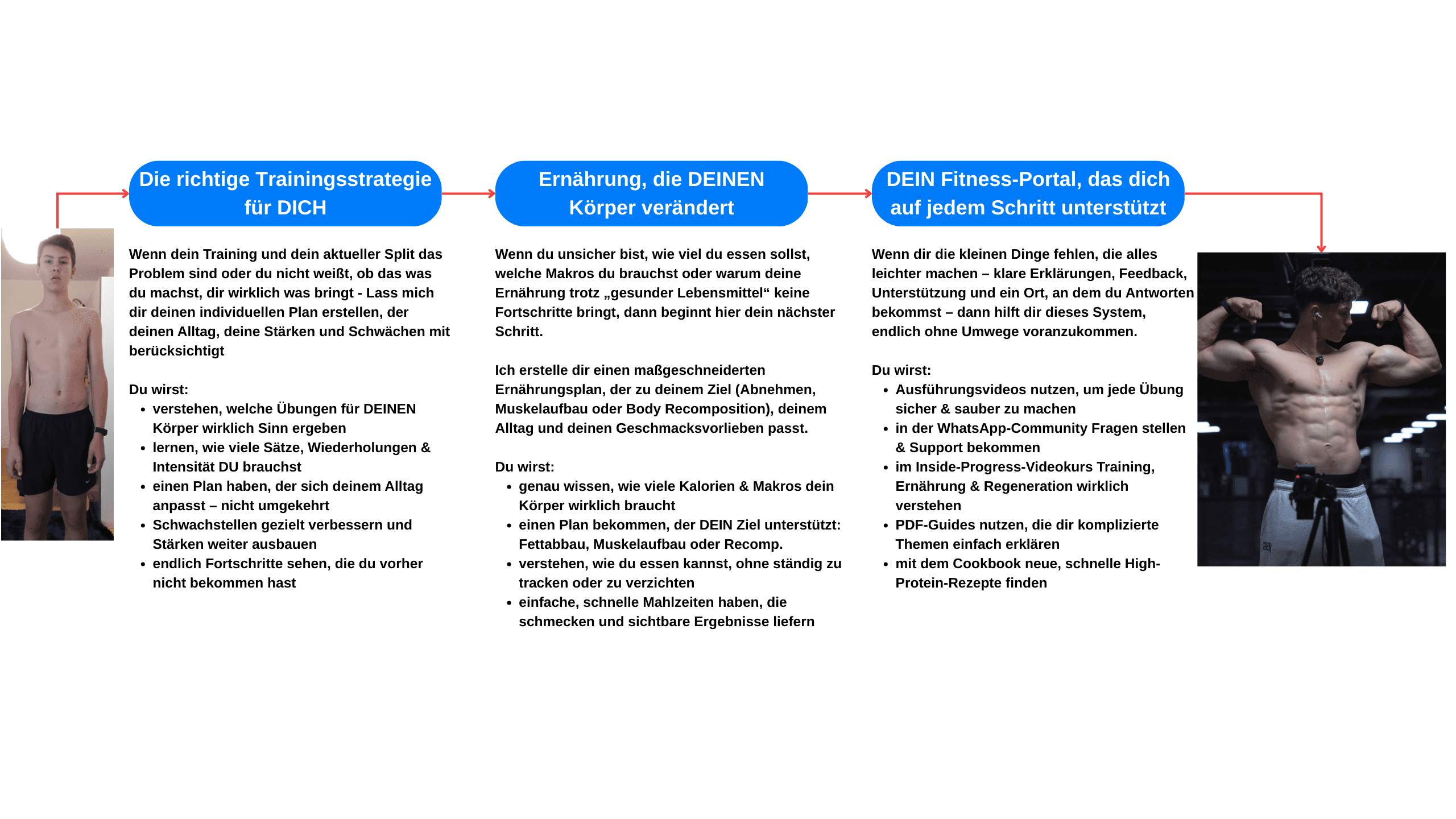 Unsere Mission ist einfach: Dir zu zeigen, wie du Muskeln aufbaust, Fett verlierst und echte Fortschritte erzielst – durch ein System, das ich selbst durchlaufen habe und das bereits vielen anderen geholfen hat, ihre beste Form zu erreichen.