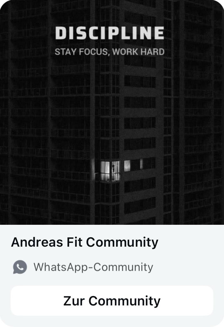 Tausch dich mit motivierten Community Mitgliedern aus, stell Fragen, teile Erfolge. Inklusive WhatsApp-Gruppen mit Fragen, Rezepten, Fortschritten und täglicher Motivation.