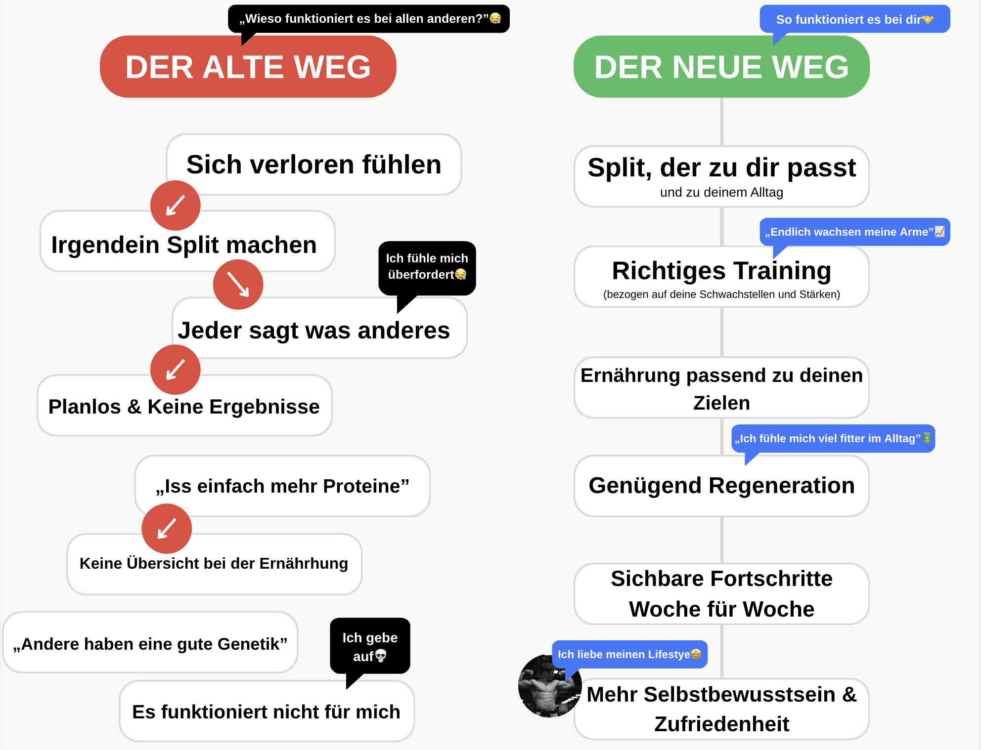 Mein Ziel: Dir das System zu geben, das mir selbst geholfen hat – damit du deine Traumform erreichst, egal ob Anfänger, Wiedereinsteiger oder festgefahren im Plateau.