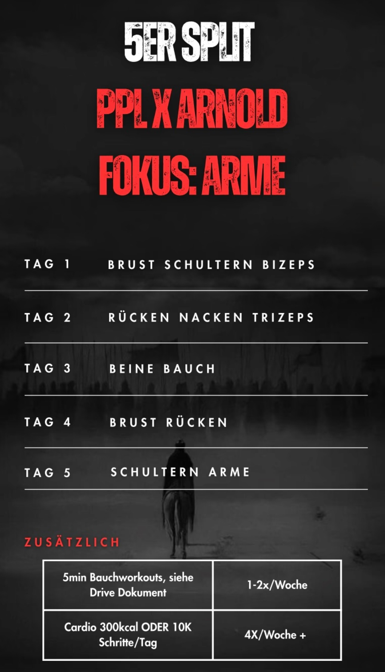 Egal ob du 3, 4, 5 oder 6 Tage Zeit hast: Dein Split sollte so aufgebaut sein, dass du optimal regenerierst, kontinu-ierlch stärker wirst und deine Sessions perfekt in deinen Alltag passen. So kombinierst du Training, Struktur und Regeneration, um für DICH maximale Erfolge zu sehen.